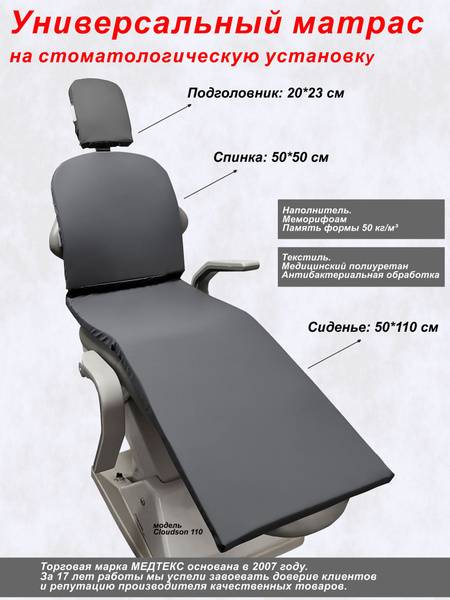 Keywords: dental chair mattress, dental mattress, memory foam mattress, dental chair cushion, dental upholstery protector, dental equipment, dental supplies, Russia-made, comfortable dental chair, ergonomic dental chair, dental practice supplies, patient comfort, 50x183 cm mattress, MEDTEX, memory foam, pressure-relieving, durable, versatile.