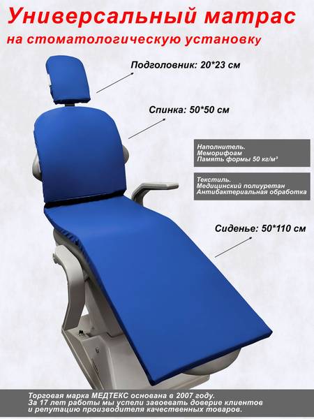 Keywords: dental mattress, dental chair mattress, memory foam mattress, dental chair protector, dental equipment, dental supplies, memory foam, Russian-made dental mattress, comfortable dental mattress, MEDTEX, 50x183cm mattress, dental chair cover, patient comfort, dental practice supplies, 50kg/m3 memory foam, dental upholstery protection.