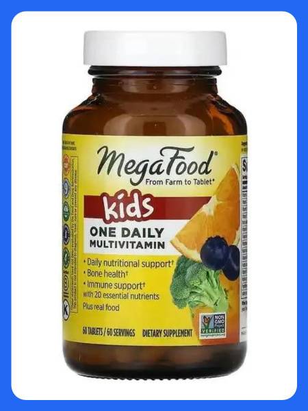 Description: Support your child's healthy growth and development with MegaFood Kids One Daily, a comprehensive multivitamin packed with 21 essential nutrients from real food. These easy-to-swallow mini-tablets provide Vitamin C and Zinc for immune support, B vitamins for energy metabolism, and Vitamin D for strong bones and teeth. Give your child the nutritional foundation they need for a bright and healthy future.