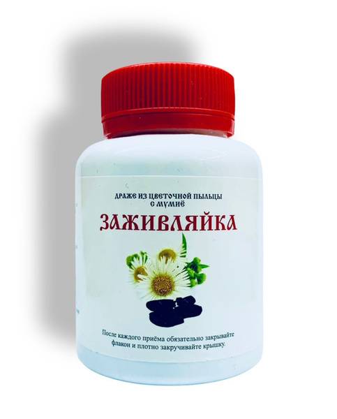 <img src="product-image.jpg" alt="Melmur Zazhivlyayka dragees"> <img src="ingredients-image.jpg" alt="Flower Pollen and Shilajit">