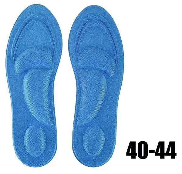 These comfortable, anatomical insoles offer superior support and cushioning for all-day comfort. Made with high-quality memory foam, they conform to the unique shape of your feet, providing relief from flat feet, plantar fasciitis, and other foot ailments. Perfect for athletic shoes, work boots, or everyday wear. Available in sizes 40-44 (Blue).