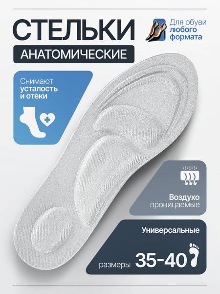 "description": "Say goodbye to foot pain and hello to all-day comfort with our premium orthotic insoles. These soft, anatomical insoles provide exceptional arch support and cushioning, making them ideal for individuals suffering from flat feet or those simply seeking superior comfort in their everyday shoes. The memory foam construction molds perfectly to the unique shape of your feet, providing personalized support and reducing pressure points. Perfect for athletic activities or long periods of standing, these insoles will keep your feet feeling their best. Available in sizes 35-40 (women's) in a classic white color.",