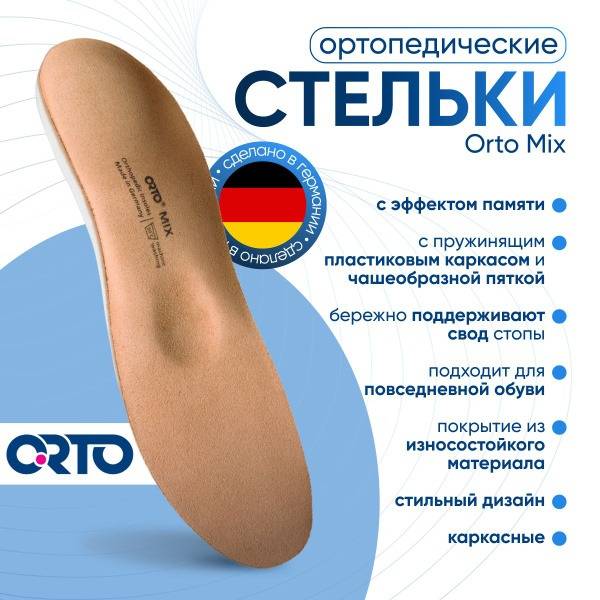 Experience superior comfort and support with Ortho Mix memory foam orthotic insoles. Crafted with Memopur® material, these insoles mold to your unique foot shape, providing pressure redistribution and relief from pain. Featuring a shortened frame with a teardrop-shaped heel cup, pronounced longitudinal arch support, a medium-sized metatarsal pad, a cup-shaped heel recess, and lateral support, these insoles offer comprehensive foot care. The durable, wear-resistant top fabric ensures long-lasting use.