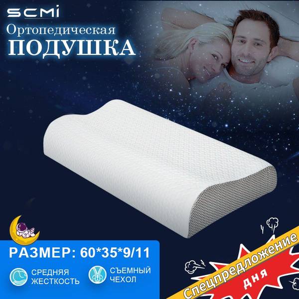 Description: The SCMi orthopedic pillow provides superior head and neck support with its anatomical design, promoting proper spinal alignment during sleep. Crafted from high-quality memory foam, it delivers exceptional comfort and relaxation. Available in two heights (9cm and 11cm) and measuring 60x35cm, it's versatile for all sleeping positions. The hypoallergenic cover, made from a soft blend of 95% polyester and 5% spandex, offers a luxuriously comfortable feel. The memory foam filling conforms perfectly to your head and neck, ensuring personalized support. Weighing 1500g, this durable pillow is designed for lasting comfort and improved sleep quality.