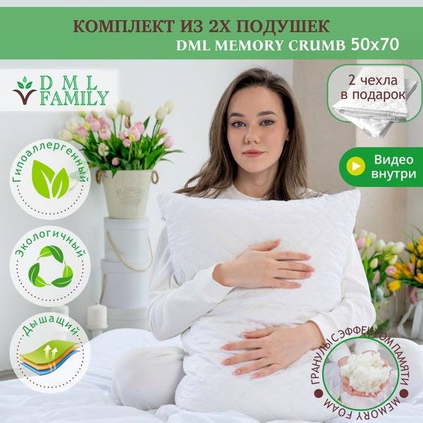 Experience the ultimate sleep with the DML FAMILY 50x70cm Memory Foam Pillow. This anatomically designed pillow cradles your head and neck, providing physiological support in any sleeping position. The high-resilience memory foam conforms perfectly to your body's contours, relieving pressure points and promoting proper spinal alignment. A removable inner cotton cover and soft microfiber outer cover ensure luxurious comfort and easy cleaning. The zippered design allows you to adjust the pillow's height (19cm maximum) by removing some of the filling to find your perfect level of support. The open-cell structure of the viscoelastic foam ensures exceptional breathability for a cool, comfortable night's sleep. Use with a standard 50x70cm pillowcase. DML FAMILY pillows are made with CertiPUR-certified memory foam, guaranteeing the absence of harmful substances, and comply with all relevant Eurasian Economic Union (EAEU) safety standards. Choose DML FAMILY for a healthier, more restful sleep.