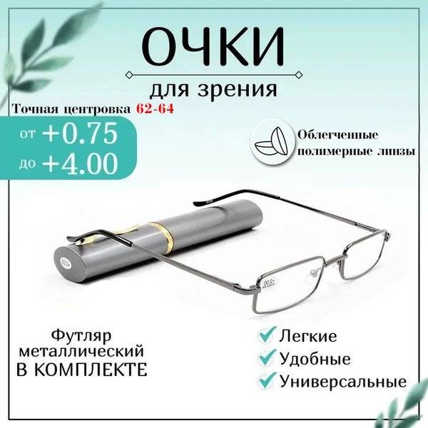 Lightweight and comfortable men's reading glasses with a +4.00 diopter correction. These stylish glasses come with a compact metal case, perfect for slipping into a pocket or purse. Suitable for both men and women.