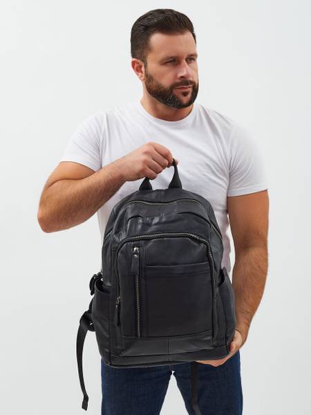 The PouchMan men's black leather laptop backpack is the ultimate blend of style, functionality, and durability. Crafted from premium full-grain cowhide leather, known for its strength, suppleness, and lasting quality, this backpack is designed for the modern professional, student, or traveler. Its generous 21L capacity (44*36*15 cm) comfortably accommodates a 15.6-inch laptop, tablet, A4 documents, and all your daily essentials.