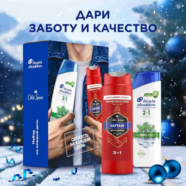 The ultimate men's grooming gift set! This classic combination of Head & Shoulders 2-in-1 anti-dandruff shampoo and Old Spice Captain shower gel provides complete hair and body care. Experience the invigorating freshness of Head & Shoulders menthol shampoo, clinically proven to eliminate dandruff, and the long-lasting scent of Old Spice Captain, keeping you feeling fresh all day. A perfect gift for any occasion.