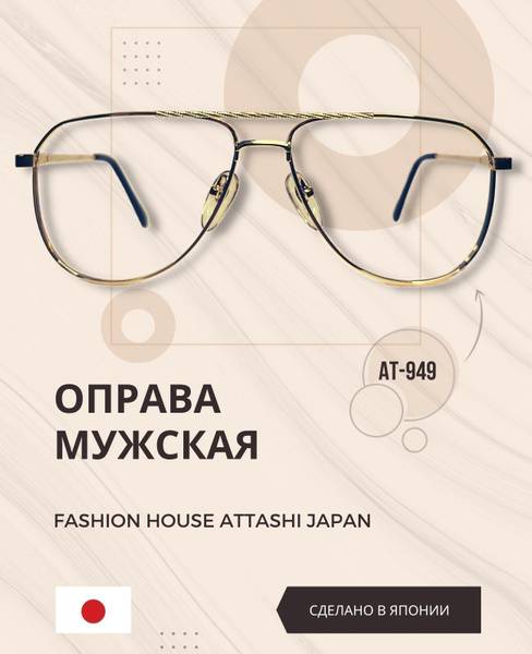 Elevate your style with the AT 949 aviator frames, handcrafted in Japan by Fashion House Attashi. These men's sunglasses and eyeglass frames boast exceptional quality and a sophisticated gold-plated finish. As an exclusive Russian supplier, we bring you the authentic Japanese craftsmanship you deserve.