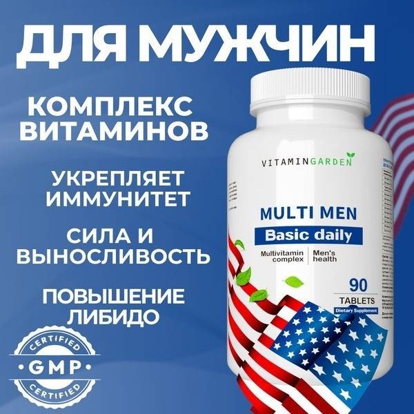 Multi Men's Vitamins provide a comprehensive blend of essential vitamins and minerals for men of all ages. This high-quality formula includes key nutrients like Vitamin B complex, Vitamin C, Vitamin D3, Vitamin E, and a boosted concentration of Zinc and other vital minerals. Experience improved immunity, increased energy and vitality, enhanced overall well-being, and support for men's health. Developed using American technology, our balanced formula delivers superior results. Faster shipping than iHerb. Take one tablet daily with water. Use for 2-4 months, and repeat as needed. Dietary supplement. Not a drug. 90 tablets, 1300mg each.