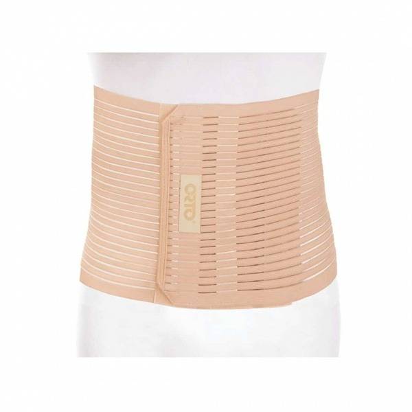 This lightweight, 24cm post-surgical support bandage provides moderate compression with an anatomical profile designed for the male physique. Featuring four flexible metal stays and a hook-and-loop closure, it supports the anterior abdominal wall above, below, and around the navel. Superior ventilation is achieved through an elastic, breathable fabric with a unique open weave construction and separately designed fastening elements. This design allows for stretch in the front panel, promoting easier breathing and making it suitable for use with concurrent cardiac or pulmonary insufficiency, while also extending wear time. The flexible metal stays prevent twisting and offer gentle lumbar support. This bandage maintains abdominal wall tone, prevents overstretching, and facilitates faster post-operative recovery. It helps prevent post-surgical suture separation and promotes proper scar formation following abdominal surgeries.