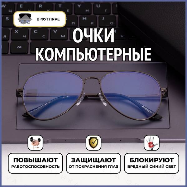 Protect your eyes from harmful blue light with Fedrov 562 C3 computer glasses. These stylish and functional blue blocker glasses are designed for men and women who spend extended time using digital devices. Our blue light filtering lenses reduce eye strain, dryness, redness, headaches, and sleep disturbances often associated with prolonged screen time on computers, tablets, smartphones, and TVs. Available in classic aviator styles and clear lens options, these non-prescription glasses offer comfortable, all-day wear. Perfect for work, leisure, and even night driving, Fedrov 562 C3 glasses provide superior eye protection without compromising style. Choose the perfect pair to safeguard your eye health and overall well-being.