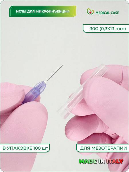 Experience superior comfort and precision with Mesoram 30G (0.3x13mm) sterile, disposable needles designed for mesotherapy and microinjections. These premium Italian-made needles feature a smaller diameter and specialized laser-sharpened tip for minimized tissue trauma. Compared to standard injection needles, Mesoram needles reduce the risk of nerve and vessel damage, hematoma formation, scarring, and rapid drug absorption. The Luer lock connection ensures secure attachment. Manufactured from biocompatible materials, these needles offer a gentler, less painful injection experience. Each box contains 100 individually sterile needles. Registered medical device - No. ФСЗ 2011/09452 (issued 27.08.2019). Ideal for professional cosmetic procedures.