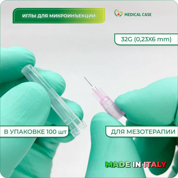 Experience superior comfort and precision with MESORAM 32G (0.23x6mm) sterile, disposable mesotherapy needles. These 100-count needles are designed for minimally invasive cosmetic procedures like mesotherapy and microinjections. Unlike standard injection needles, MESORAM needles feature a shorter length, specialized bevel, smaller diameter, and laser-sharpened tip for reduced tissue trauma. This minimizes the risk of nerve and vessel damage, hematoma formation, scarring, and rapid drug dispersal. The Luer lock connection ensures secure attachment. Crafted from biocompatible materials, these needles provide a superior injection experience. Registered medical device (Registration Certificate No. ФСЗ 2011/09452 dated 27.08.2019).