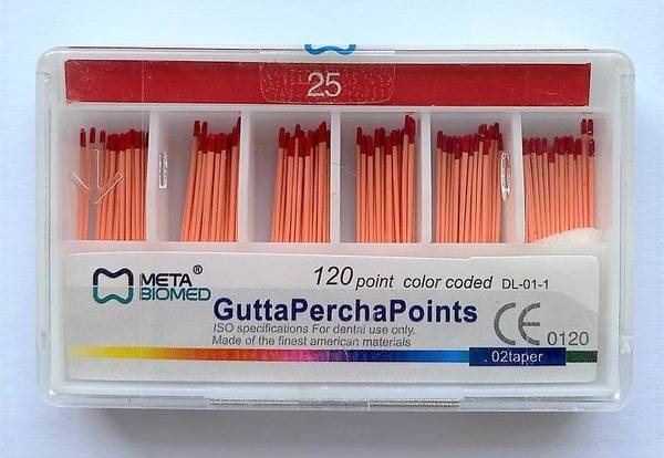 Keywords: gutta-percha points, root canal obturation, endodontics, dental supplies, size #25, .02 taper, Meta Biomed, ISO standard, biocompatible, natural gutta-percha, dental materials, root canal filling, dental instruments, warm condensation, lateral condensation, vertical condensation, radiopaque, high-quality, reliable sealing, 120 count.