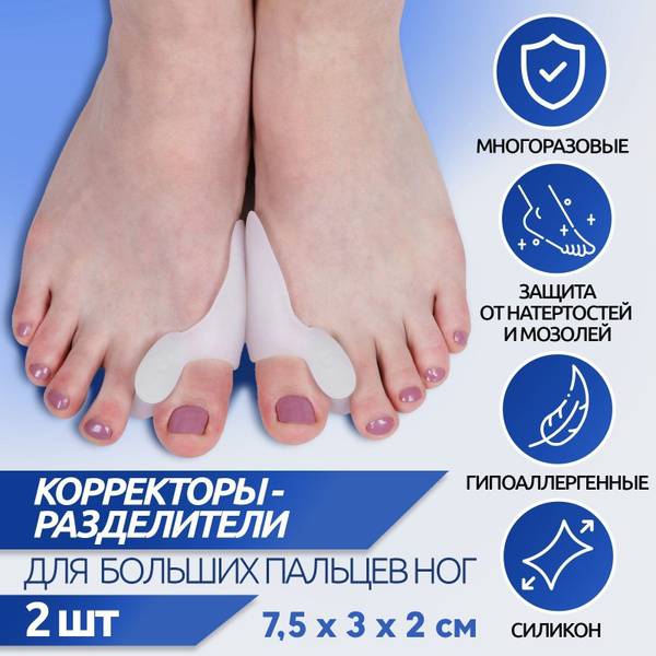 Say goodbye to bunion pain and overlapping toes with this comfortable and effective 2-pack of silicone bunion protectors. Each protector features a 12mm thick silicone toe separator that gently realigns your big toe, preventing painful rubbing and overlapping with your second toe. The wide, 1-2mm thick silicone bunion pad cushions and protects the joint from pressure and friction caused by footwear.