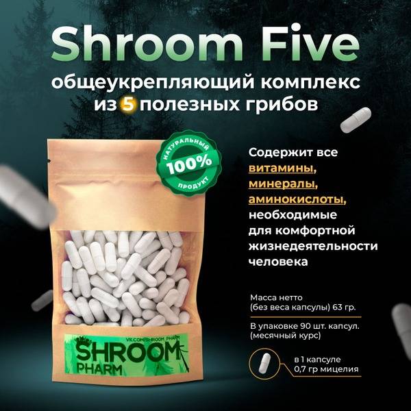 Each capsule contains a precisely balanced microdose of these powerful mushrooms, allowing for optimal absorption and long-lasting benefits. Our 90-capsule bottle provides a 30-day supply, with a recommended course of 90 days for maximum results. Shroom Five is crafted using only the highest quality, naturally sourced ingredients, providing a potent and effective way to support your overall health and well-being.