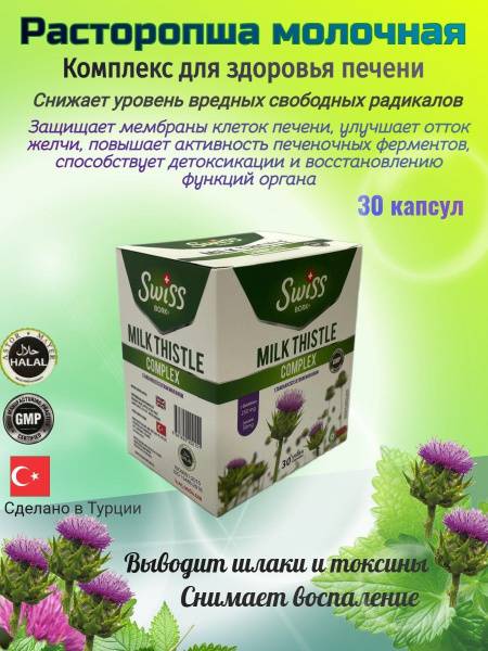 Swiss Bork Milk Thistle capsules offer superior liver support. This high-quality supplement combines natural herbal ingredients, including silymarin (the key active component in milk thistle), to protect liver cells from damage caused by free radicals. It improves liver function, digestion, and metabolism, and positively influences the gallbladder and pancreas. Enhanced with choline (vitamin B4) for fat metabolism and detoxification, L-glutathione for immune support, dandelion extract for its diuretic and choleretic properties, ginger for anti-inflammatory benefits, and phosphatidylcholine for nutrient absorption, this comprehensive formula provides holistic liver health. Curcumin further combats inflammation. Unlike milk thistle oil, these easy-to-take capsules are perfect for adults of all ages seeking natural liver support. This supplement complements a healthy diet, but consult your doctor before use, especially if you're taking other supplements or are pregnant/breastfeeding. Individual intolerance may also be a contraindication. This product is not a medicine.