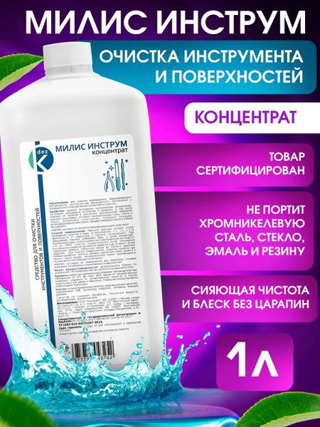 Description: Milis Instrument is a powerful yet gentle cleaning concentrate designed for professional use in manicuring, hairdressing, and medical settings. This 1-liter solution effectively removes stubborn organic residue, calcium deposits, and rust from instruments and surfaces. It's formulated to safely clean chrome-nickel steel, glass, enamel, and rubber seals without damage. Milis Instrument boasts superior cleaning and anti-corrosion properties, leaving instruments sparkling and scratch-free. Important: Milis Instrument is not a disinfectant. Dilute with water (1:1, 1:2, or 1:3 ratio depending on soiling) and soak instruments for 2-15 minutes, or apply to surfaces with a cloth/brush and rinse thoroughly. Ultrasonic cleaning is recommended for automated processes. Not for use on aluminum, tin, or galvanized surfaces. Ideal for medical and cosmetic applications.