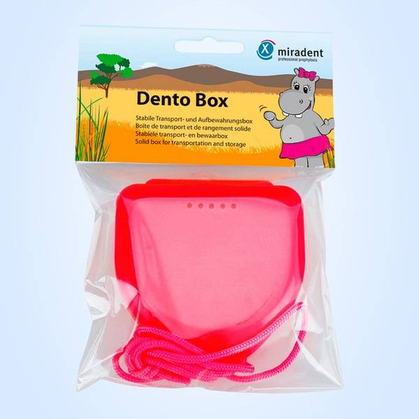 Description: The Miradent Dento-BOX Pink is a convenient and protective plastic case designed for storing and transporting orthodontic appliances such as retainers, aligners, and removable braces. Features include ventilation holes for optimal hygiene and a handy neck cord for secure carrying.