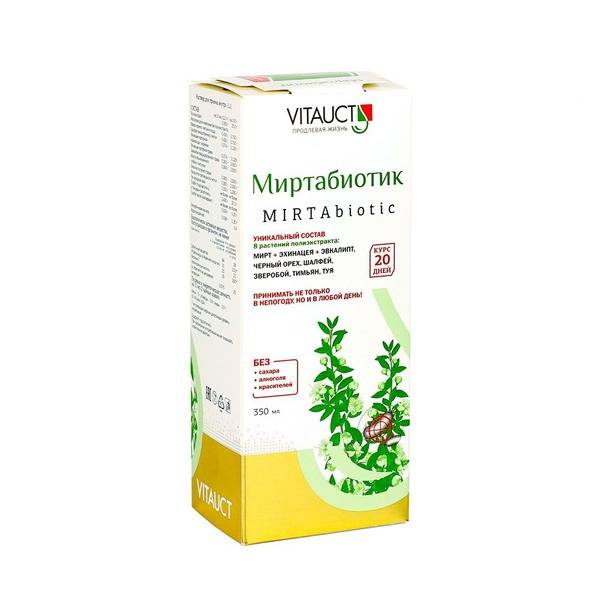 Description: MIRTAbiotik Vitauct is a safe, next-generation natural antibiotic. Effective against a wide range of conditions including sepsis, colds, bronchopulmonary diseases, viruses, herpes, trophic ulcers, rhinitis, gastrointestinal disorders, urethritis, cystitis, prostatitis, rheumatism, cholangitis, pyelonephritis, and polyarthritis. Unlike chemical antibiotics, it doesn't cause side effects or lead to bacterial resistance, allowing for long-term use. Alcohol and preservative-free, MIRTAbiotik Vitauct is also recommended for preventative health and immune system support, even in the absence of illness. Its natural formula makes it suitable for children.