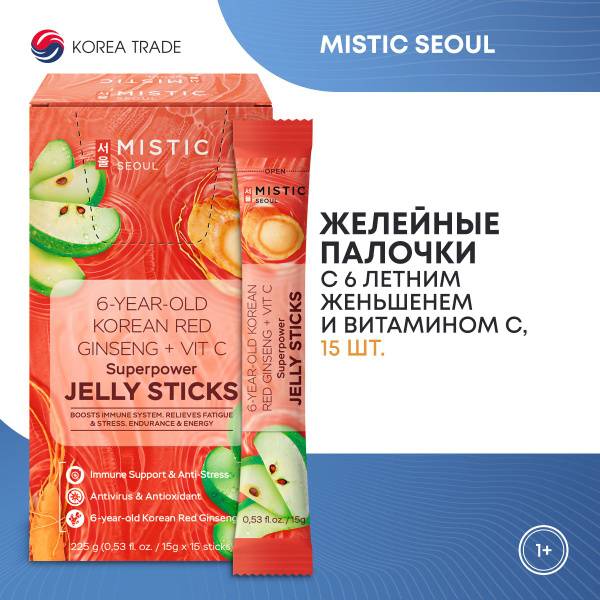 Boost your immunity and energy with Mistic Superpower Jelly Sticks. Each stick combines the power of 6-year-old Korean red ginseng extract with Vitamin C for a delicious and effective daily supplement. Ginseng helps combat stress, improves memory and focus, and enhances stamina, while Vitamin C supports skin health and immunity. Enjoy the refreshing apple flavor in a convenient, low-calorie format. Perfect for maintaining energy, health, and cognitive function throughout your day.