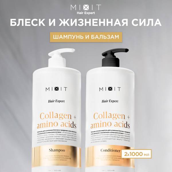 MIXIT, Hair Expert, Shampoo, Conditioner, Gift Set, Hair Care, Shine, Restorative, Biotin, Amino Acids, Collagen, Detox, Deep Cleansing, Smoothing, Volumizing, Strengthening, Damaged Hair, Fine Hair, Blonde Hair, Brunette Hair, All Hair Types, 1L, Large Volume, Professional, Premium, Eco-Friendly, Gift, Birthday Gift, Holiday Gift.