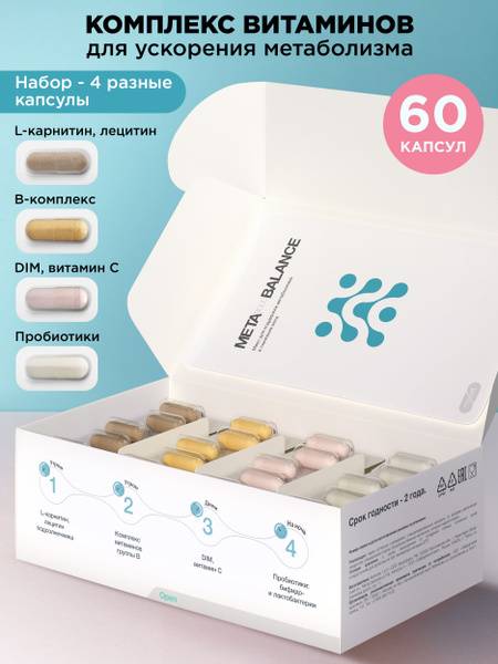 Description: MIXVIT Metabolic Balance: A comprehensive vitamin and mineral complex designed to support metabolism and weight loss. This 60-capsule supplement blends Vitamins B, Biotin, Choline, Inositol, L-Carnitine, and Sunflower Lecithin to enhance lipotropic activity and boost the metabolism of fats and proteins. Probiotics and prebiotics promote gut and liver health, while L-Carnitine contributes to increased energy levels and improved cognitive function. This natural weight-management formula supports healthy appetite control and contributes to a balanced approach to weight loss. Suitable for adults aged 30-50+. Recommended dosage: 4 capsules daily (2 in the morning, 1 midday, 1 at night). Contains Vitamin C and Vitamin B6.