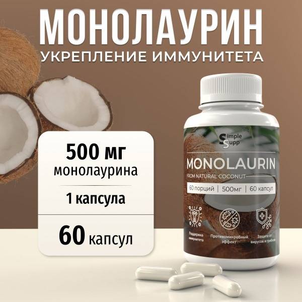 SimpleSupp Monolaurin 500 mg delivers a lipid compound sourced from coconut extract in a capsule format. This product is formulated for use within wellness and sports nutrition routines, providing monolaurin as a dietary component alongside excipients commonly used in capsule manufacture.