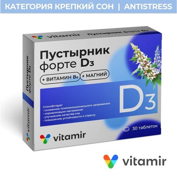 Vitamir Passiflora Forte D3 is a dietary supplement in tablet form that combines passiflora extract, magnesium, vitamin D3 and vitamin B6. The formulation provides an elevated level of passiflora extract alongside micronutrients selected to support nervous and cardiovascular system function and to promote favorable sleep patterns and emotional balance.