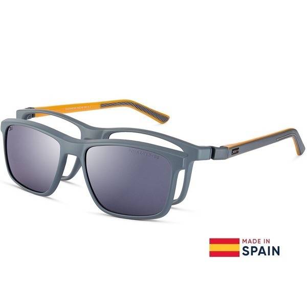 Experience ultimate versatility and protection with the DOSUNO DU335203SC anti-shatter eyewear. These stylish matte grey frames with orange accents feature a magnetic clip-on with polarized, blue light filtering lenses, offering superior sun protection and eye strain reduction. Crafted from patented, skin-friendly Siliflex® silicone, these lightweight (20g frame, 8g clip) glasses offer unparalleled comfort and durability. The flexible design withstands extreme bending (180-degree bend test!) and provides a secure fit, even during intense activities. Included is an adjustable strap for added security. Perfect for everyday wear, sports, or any adventure, these glasses are a game-changer for those seeking durable, comfortable, and stylish eyewear. Prescription lenses are easily accommodated. Includes a protective case, cleaning cloth, and adjustable strap. One-year manufacturer's warranty. Imported from Spain.