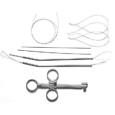 Nasal polyp snares are reusable surgical instruments designed for the precise removal of nasal polyps. These high-quality instruments utilize a wire loop to capture and excise polyps within the nasal cavity, offering a minimally invasive approach to polyp removal. The snare features a curved design for optimal access and maneuverability within the nasal passages. The ergonomic 3-ring handle provides a secure and comfortable grip, while the reliable screw lock ensures the wire loop remains securely in place throughout the procedure. Designed for repeated use, these nasal polyp snares represent a durable and cost-effective solution for ENT professionals. Their construction ensures precision and effectiveness in polyp removal, contributing to improved patient outcomes.