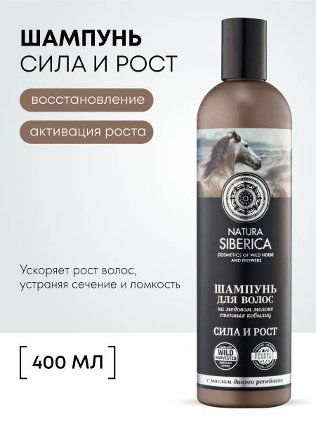 Natura Siberica Strength & Growth Shampoo, infused with honey kumiss and burdock oil, revitalizes and strengthens hair, promoting healthy growth. This sulfate- and paraben-free formula is suitable for all hair types, including fine, oily, and color-treated hair. Experience noticeably stronger, fuller, and faster-growing hair. 400ml.
