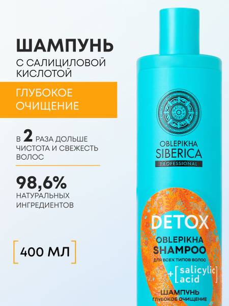 Natura Siberica's Oblepikha Professional Detox Shampoo deeply cleanses all hair types, balancing, toning, and exfoliating for fuller, healthier-looking hair. This natural hair detox shampoo features salicylic acid, vitamin-rich sea buckthorn oil, and Siberian juniper extract. Mint and Vitamin C work together for intensive repair and accelerated growth. Paraben- and silicone-free, this vegan formula is suitable for frequent use, perfect for deep cleansing, nourishment, and volumizing. It effectively combats dandruff and dryness, adding volume and shine to all hair types – including color-treated, fine, oily, dry, and thick hair. This professional-grade, sebum-regulating shampoo is suitable for the whole family, leaving hair smooth, manageable, and radiant. The gentle, herbal-mint scent enhances the cleansing, strengthening, and nourishing experience. A great gift for any occasion, this organic, natural, and vegan product demonstrates your care and consideration.