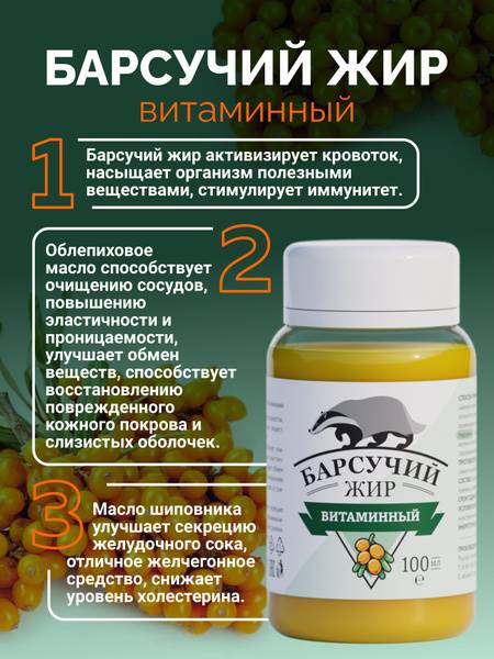 Altayved's Vitamin-Rich Badger Fat with Sea Buckthorn and Rosehip Oil offers powerful restorative and immune-boosting benefits. This 100ml blend combines the natural healing properties of badger fat, known for its ability to improve circulation, nourish the body with essential nutrients, and strengthen the immune system. Sea buckthorn oil supports cardiovascular health by promoting healthy blood vessel elasticity and permeability, improving metabolism, and aiding in the repair of damaged skin and mucous membranes. Rosehip oil enhances digestive function, acts as a natural choleretic (bile stimulant), and helps lower cholesterol. This potent combination is ideal for supporting overall well-being, particularly during periods of vitamin deficiency, infection, or cold and flu season.
