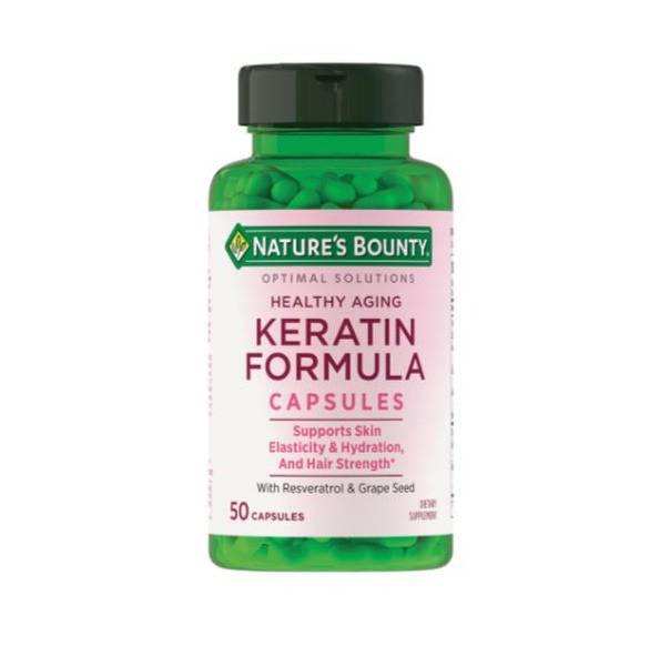 Experience the transformative power of Nature's Bounty Keratin Formula Capsules. This advanced supplement combines a unique blend of natural, essential bioactive ingredients to promote healthy hair growth, repair damage, and enhance the beauty of your skin and nails.