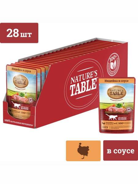 Indulge your feline friend with Nature's Table⢠Turkey in Sauce wet cat food. Made with 100% natural, high-quality ingredients from trusted suppliers, this recipe features: