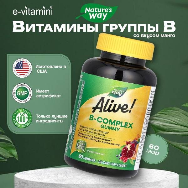 <img src="natures-way-alive-mango-b-vitamins-gummies.jpg" alt="Nature's Way Alive! Mango Flavored B Vitamins Gummies 60 Count">