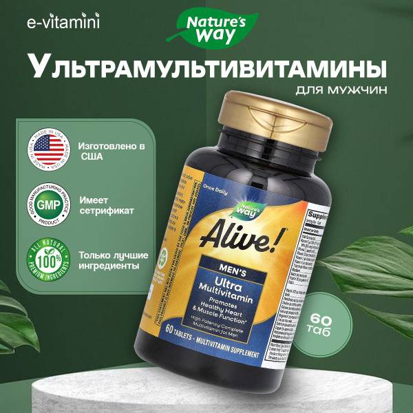 Support your overall well-being with Nature's Way Alive! Men's Multivitamin. This comprehensive formula provides essential vitamins and minerals for key areas of men's health, including: eye health (beta-carotene, vitamin A, C, E, lutein, zinc); bone health (calcium, folate, magnesium, manganese, vitamins D3 & K); heart health (B vitamins, vitamins C & E); immune system support (selenium, zinc, vitamins A, C & D3); energy metabolism (B vitamins); and muscle support (magnesium, vitamin B6 & D3). Features highly bioavailable B vitamins, including active B12 and folate.