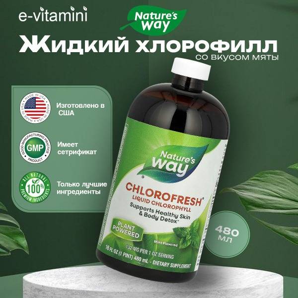 Boost your health with Nature's Way Liquid Chlorophyll. This mint-flavored supplement supports cardiovascular, respiratory, and digestive health, acts as an antioxidant, and may help with thyroid function, enzyme production, anemia, blood pressure regulation, and stress reduction. Experience the revitalizing benefits of chlorophyll.