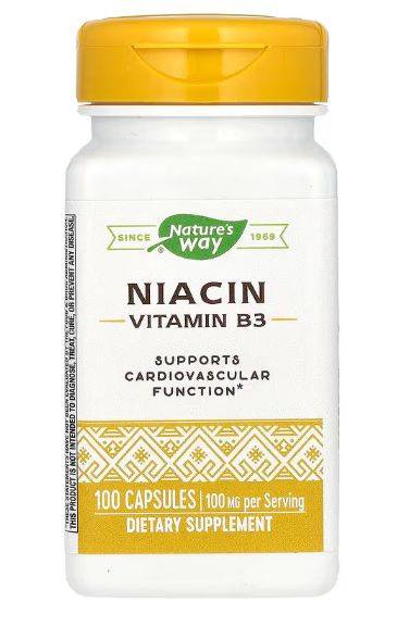 Nature's Way Niacin, Niacin 100mg, Vitamin B3, energy boost, nervous system support, cholesterol support, circulation improvement, skin health, fatigue relief, anxiety relief, detoxification, healthy heart, supplement, 100 capsules, high cholesterol, poor circulation, chronic fatigue, niacin deficiency symptoms.