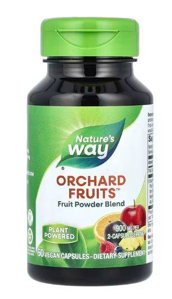 Keywords: Nature's Way Orchard Fruit, fruit blend, antioxidant supplement, immune support, energy boost, digestion support, vegan supplement, gluten-free supplement, antioxidant protection, free radical damage, anti-aging, vitamins, phytonutrients, fatigue relief, digestive health, constipation relief, bloating relief, healthy digestion, detoxification, vegan, gluten-free, 60 capsules.