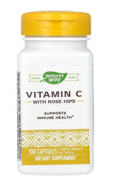 Nature's Way Vitamin C 500mg with Rose Hips: A natural way to support your immune system, skin, joints, and cardiovascular health. Experience the difference of enhanced Vitamin C absorption with the added benefits of rose hips. Discover health, energy, and vitality in every capsule! 100 capsules per bottle.
