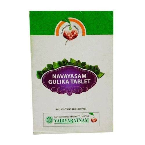 Navayasam Gulika, Vaidyaratnam, herbal supplement, liver health, spleen support, metabolism, blood sugar, blood sugar support, herbal medicine, Ayurvedic medicine, holistic health, wellness, dietary supplement, 100 tablets, liver function, metabolic function.