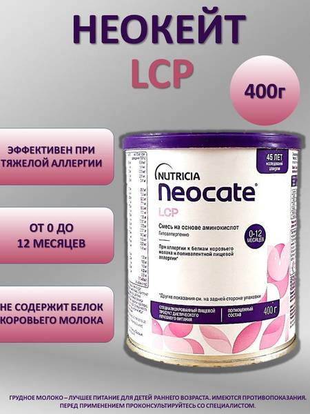 Neocate LCP is a specialized, hypoallergenic, amino acid-based infant formula designed for babies aged 0-12 months with cow's milk protein allergy, multiple food allergies, or other conditions requiring an amino acid formula. This 400g can of Neocate LCP provides complete, balanced nutrition, closely mirroring the composition of breast milk to support optimal growth and development. It's free from cow's milk protein, lactose, fructose, sucrose, gluten, cholesterol, and GMOs. Neocate LCP contains essential amino acids, easily digestible fats and carbohydrates, and vital vitamins and minerals, including DHA and ARA for brain development. This formula is hypoallergenic and has a neutral taste. Dosage and preparation should be determined by a pediatrician based on the infant's age, weight, and clinical condition. Consult your doctor before use.