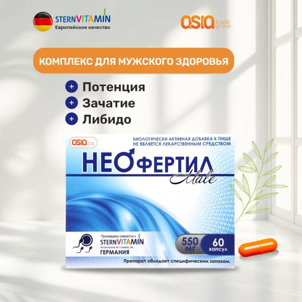 Neofertil Male, men's reproductive health, male fertility, infertility, erectile dysfunction (ED), low libido, andropause, L-Carnitine, L-Arginine, Coenzyme Q10, Vitamin E, Zinc Citrate, Folic Acid, L-Glutathione, sperm quality, sperm motility, testosterone, sexual health, male supplement, dietary supplement, Sternvitamin.