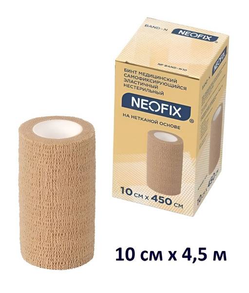 self-adherent bandage, elastic bandage, cohesive bandage, non-sterile bandage, medical bandage, wound dressing, bandage roll, 10cm bandage, 450cm bandage, Neofix, first aid, medical supplies, compression bandage, class 1 compression, breathable bandage, skin-friendly bandage, water resistant bandage, self-adhering bandage.