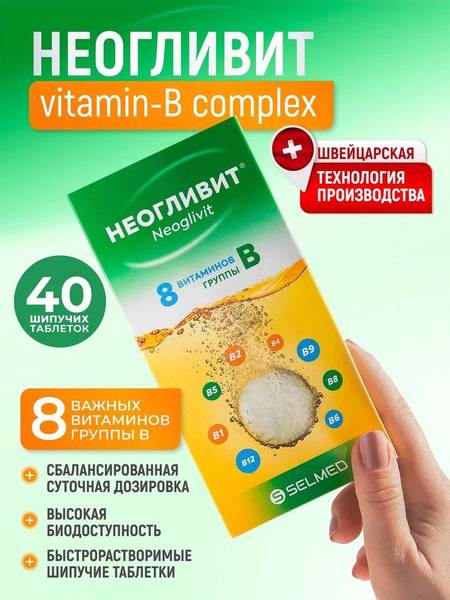 Experience the power of optimized B vitamins with Neoglivite #40. Our fast-dissolving tablets leverage patented Swiss Actilease® technology, ensuring superior bioavailability and maximum effectiveness of each vitamin. This unique formula contains a comprehensive blend of B vitamins: B1 (Thiamine), B2 (Riboflavin), B3 (Niacin), B4 (Choline), B5 (Pantothenic Acid), B6 (Pyridoxine), B7 (Biotin), B8 (Inositol), B9 (Folate), and B12 (Cyanocobalamin).