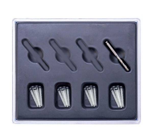 This kit includes 20 FIBRAPOST size #4, 1.8mm (0.18) transparent-black posts and 1 unwinding tool.