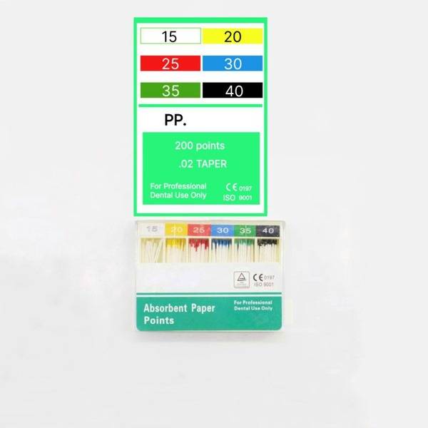 This pack contains 200 high-quality paper points, ideal for dental professionals requiring reliable and efficient root canal drying.